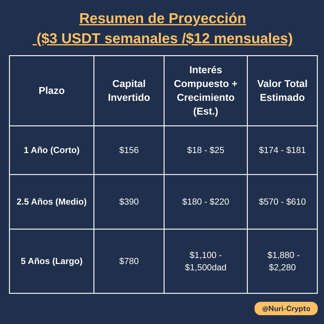 Resumen de Proyección ($3 USD semanales / ~$12 mensuales)