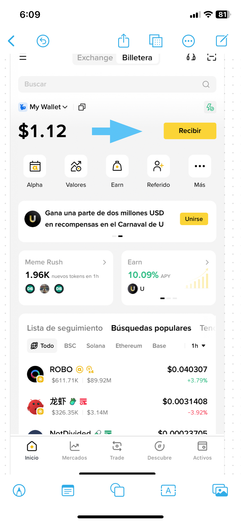 Estimados Binancers que quieren ganar más, chicos nuevos, a los que preguntan qué hago con mis $Usdt, dónde puedo invertir? Cómo puedo multiplicarlos?, pues hay muchas formas de generar ganancias en Binance entretenidas y educativas pero yo te traigo una serie de artículos para ganar en serio y sin el stress de Futuros, que no están aprovechando para eso voy a enseñarles a usar la billetera de Binance y a la vez informarles el contenido que acompaña todos los conceptos de la Web 3, observa los pasos de la ilustración. Primero lo primero es conocer donde está tu billetera de Binance. Puedes tranaferir cualquiera de tus tokens desde la palabra Recibir, elige la opción transferir desde el exchange de Binance, elige el token, al tocar el token aparecerá una pantalla de seleccionar red, es importante que sepas que cada red tiene una comisión diferente cobrada del token que estás enviando, esta te avisa cuanto te cobrará de tu transferencia, pero no completes la transferencia hasta que conozcas el uso que le vas a dar porque cada vez que muevas tus tokens te cobrarán esa pequeña comisión de red, todas esas redes son compatibles pero en otro apartado te dire la importancia de conocer la red que usarás para recibir de otros usuarios o enviar a otros usuarios no la elijas al azar. En la siguiente publicación te hablaré de la seguridad en la billetera de Binance Web 3 tu Hot wallet, y los usos para DeFi, su significado y usos.