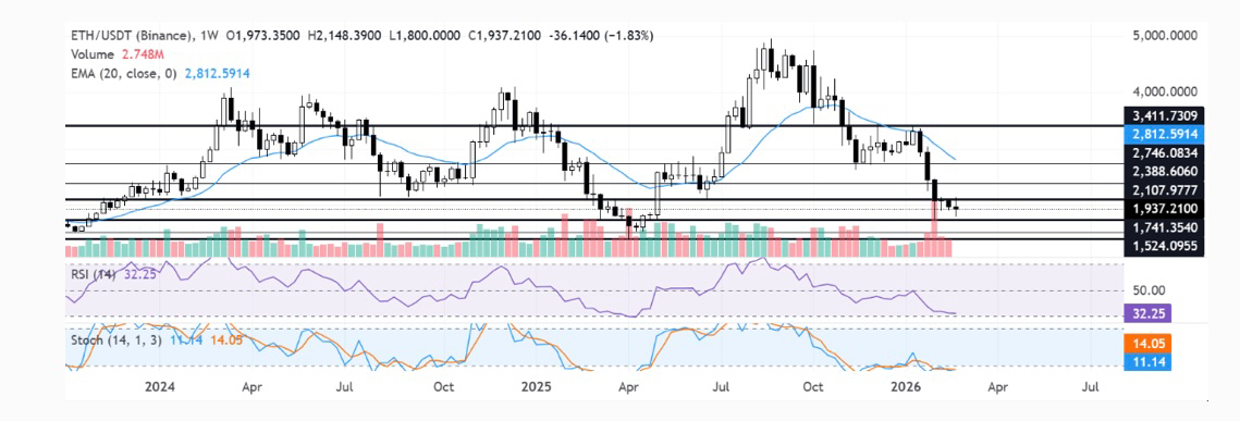 Biểu đồ ETH/USDT hàng tuần | Nguồn: TradingView