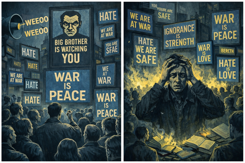 orwell nailed it in 1984: they keep you in a made-up state of emergency so every scare feels normal.