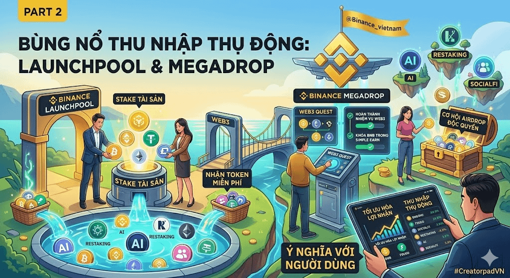Sự kiện: Sàn giao dịch Binance liên tục ra mắt các dự án chất lượng cao thông qua nền tảng Launchpool và Megadrop, tập trung mạnh vào các narrative (xu hướng) dẫn dắt thị trường như AI, Restaking, và SocialFi.