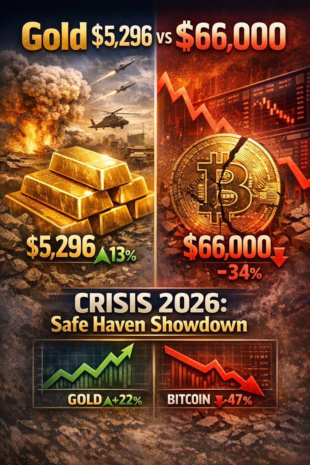 في مرحلة “الصدمة الأولى” (Risk-Off)، الذهب تفوق بوضوح.