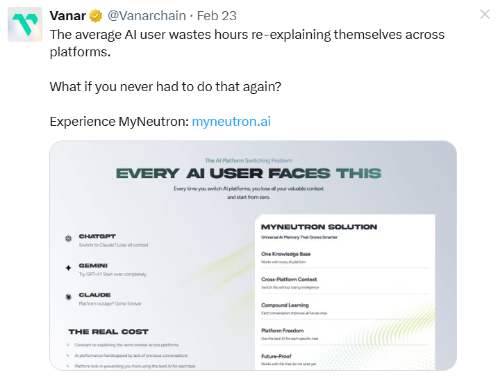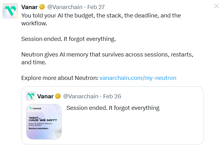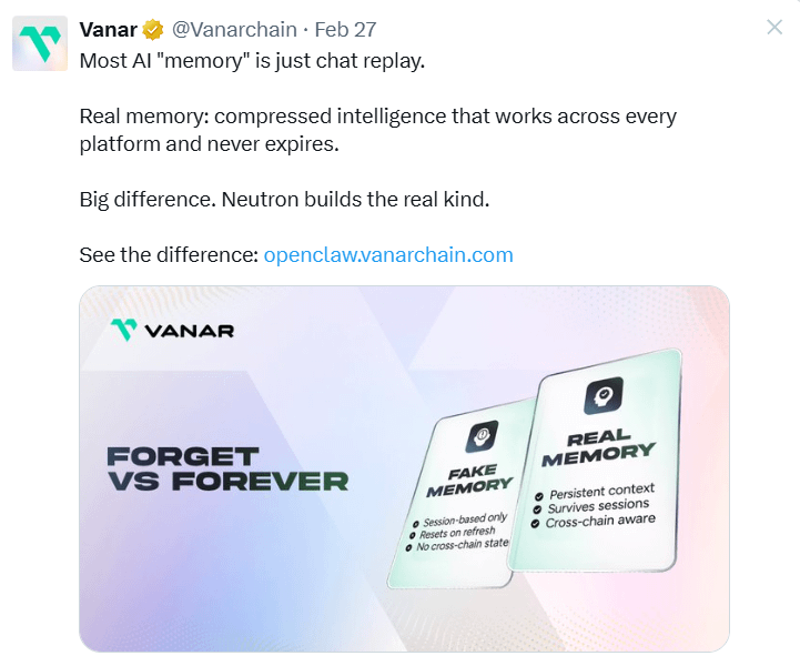 Controlla di più: https://x.com/Vanarchain/status/2027363806309949720