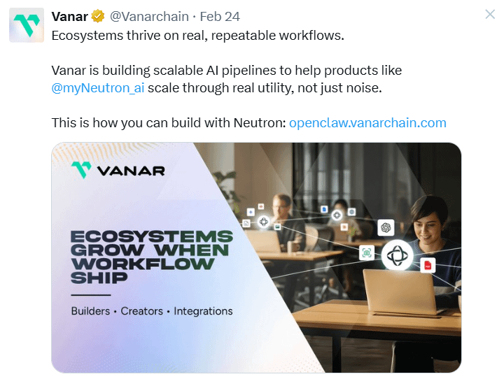 Controlla di più: https://x.com/Vanarchain/status/2026223284778352881
