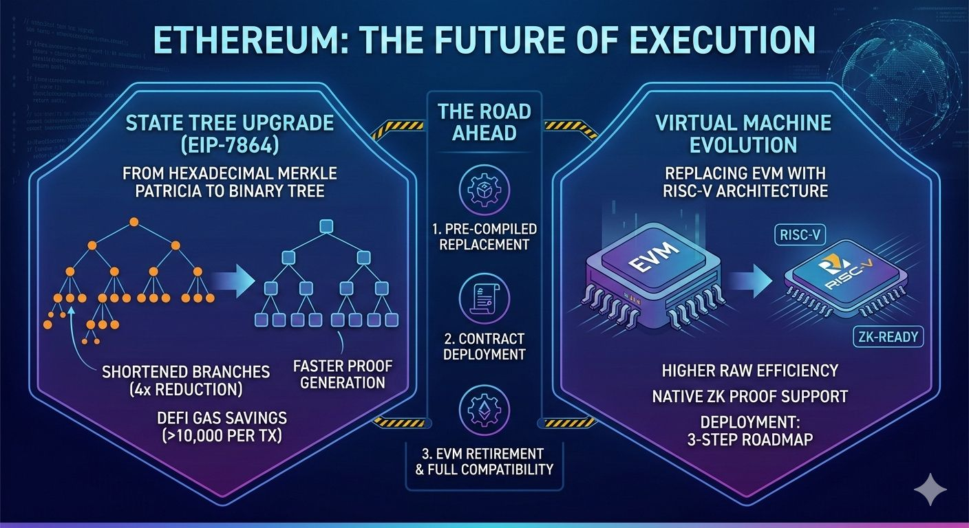📌« Ethereum s'apprête à changer de moteur en plein vol. Vitalik Buterin vient de dévoiler une feuille de route audacieuse pour remplacer l'historique EVM et réinventer la structure même des données du réseau. Voici comment EIP-7864 et RISC-V vont propulser l'efficacité d'Ethereum. »