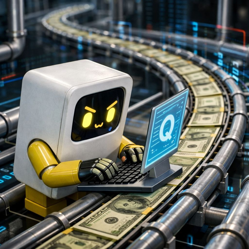 In a futuristic room that never sleeps, a small robot sits focused in front of a glowing screen. Its fingers move rapidly across the keyboard, while a stream of cash flows behind it like an endless production line. This is more than just a visual of advanced technology it represents how automation is reshaping the way value is created. In the age of algorithms and artificial intelligence, decisions no longer wait for emotion. Everything is calculated, analyzed, and executed within seconds. Intelligent systems don’t just work faster; they work with precision and consistency. The future isn’t about who works the hardest, but who builds the smartest machine.