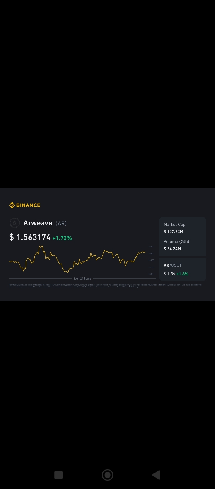 Note: Binance spot trading data shows AR/USDT around ~$1.58 USD with recent price swings. �