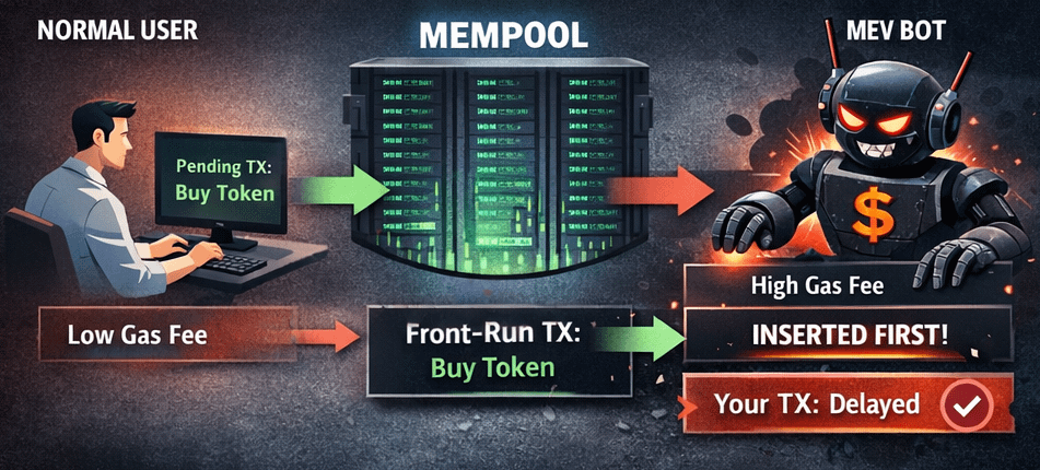 Il meccanismo tecnico dietro è determinato dal consenso della blockchain e dalla logica di ordinamento del mempool.
