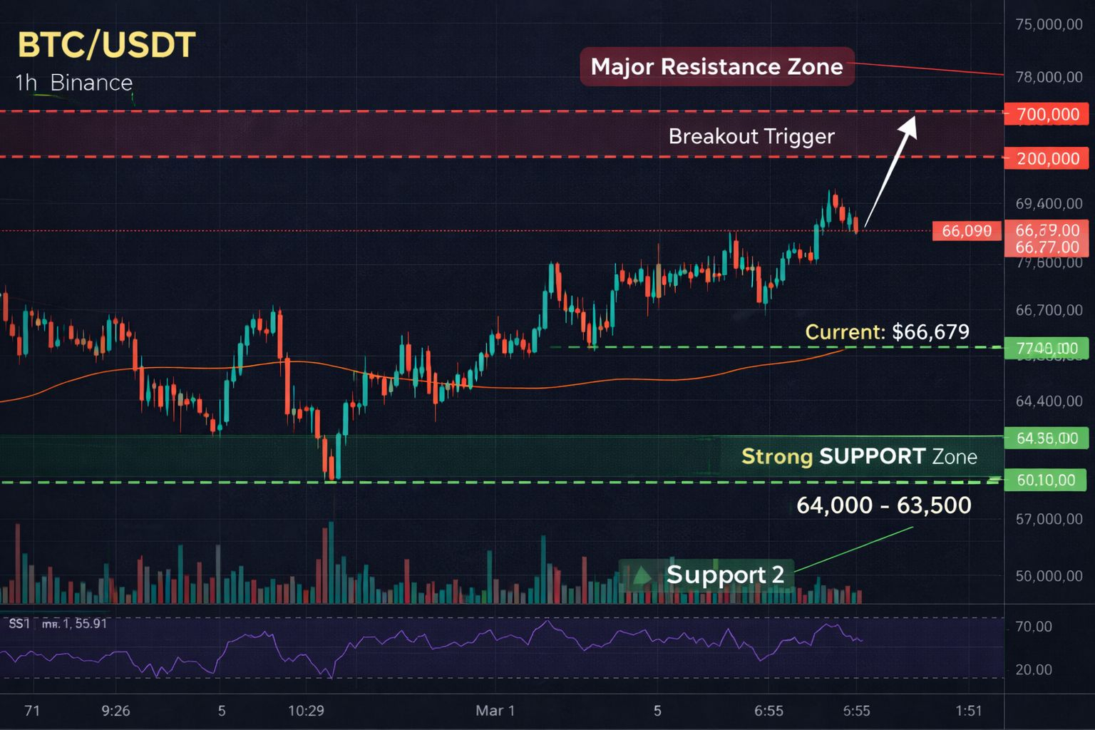A strong daily close above 70K could trigger momentum toward 72K–75K.