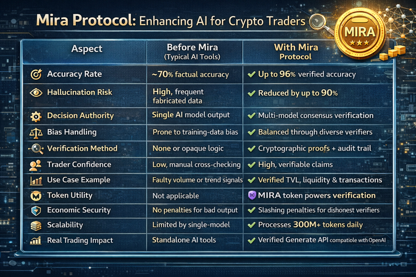 I dati mostrano l'impatto. Mira ha aumentato l'accuratezza fattuale da circa il 70% al 96% in ambienti testati. I tassi di allucinazione scendono fino al 90 percento. La rete elabora oltre 300M di token al giorno attraverso le applicazioni. Nel crypto, questo si traduce in una migliore valutazione del rischio. Una volta ho evitato un rug pull grazie a intuizioni di IA verificate sulle vulnerabilità dei contratti intelligenti. Senza Mira, l'output grezzo dell'IA potrebbe aver trascurato i segnali di allerta.