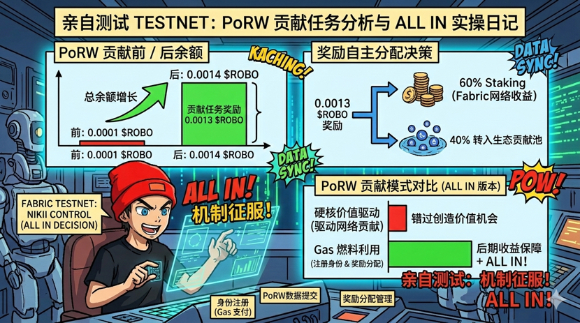 Recentemente ho studiato molti progetti, ma $ROBO e Fabric Protocol mi hanno fatto andare direttamente all in! La scorsa settimana mi sono connesso a@Fabric Foundation e ho effettuato quattro test di contributo PoRW, ognuno dei quali si è concentrato sul pagamento dei gas per la registrazione dell'identità, sull'esecuzione di compiti di contribuzione, sull'ottenimento di ricompense e sulla distribuzione autonoma... il processo è stato così emozionante che voglio condividere con voi tutti i dettagli del flusso di $ROBO!
