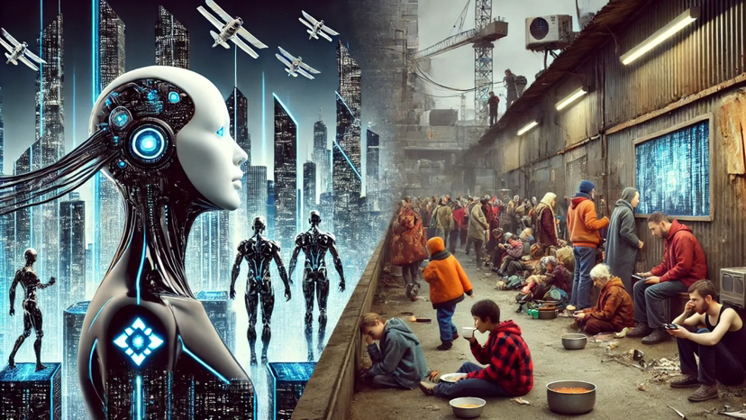 ➡️(A futuristic scene of community-owned humanoid robots in everyday tasks like caregiving or delivery, emphasizing open access and shared economy benefits.)