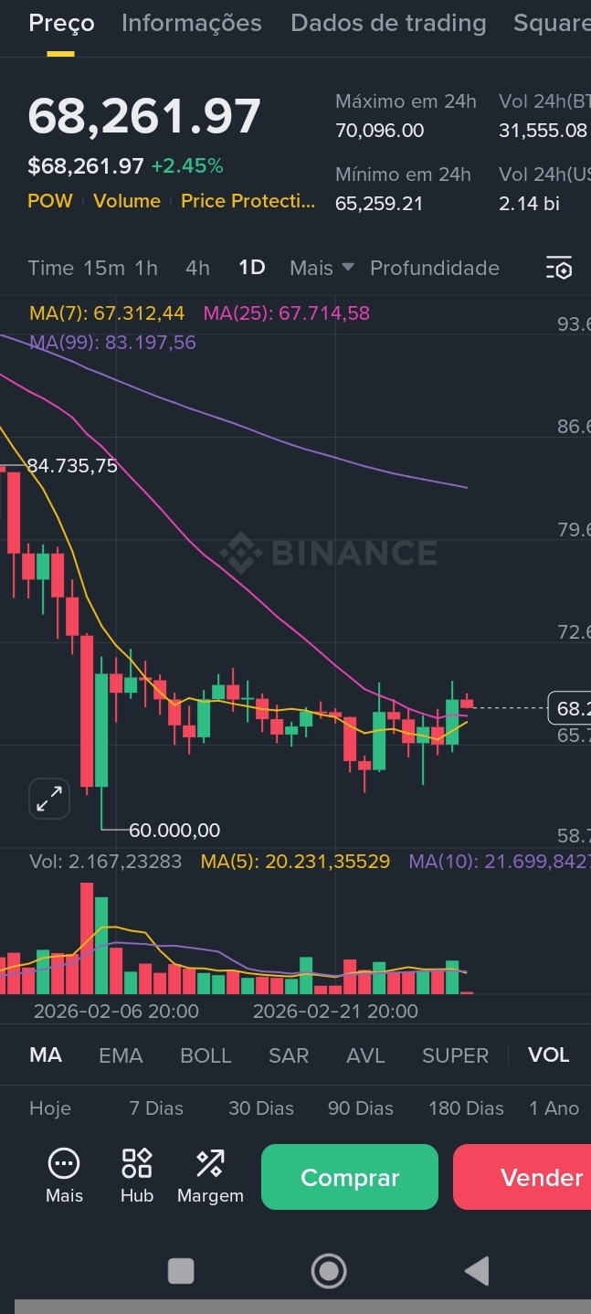 📌 BTC está sendo negociado em torno de ~$68.300 a ~$69.000 USD nas últimas 24 horas, com variações pequenas de preço e volatilidade típica de criptomoedas. �