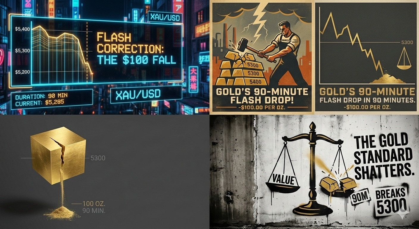 Gold just pulled a disappearing act that has the trading floor buzzing. In a blistering 90-minute window, spot gold prices plummeted by $100/oz, officially slicing through the psychological floor of $5,300/oz.