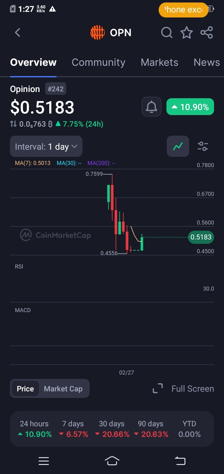 $OPN Price rallied hard from 0.4534 to 0.6024 but got rejected exactly at the 24h high. That wick shows sellers defended the level aggressively. Now price is drifting back toward the 0.5037–0.5162 zone—an area that previously acted as resistance and could flip to support.