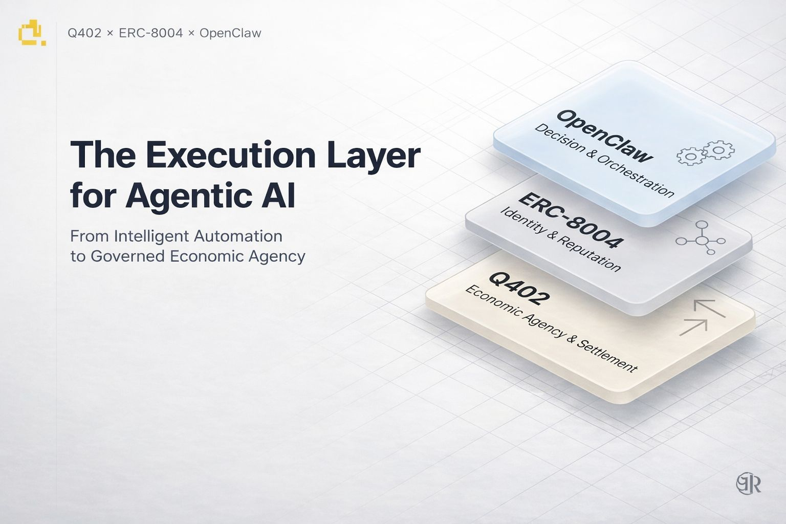 Built on a three-layer architecture Q402 for economic agency and settlement, ERC-8004 for identity and reputation, and OpenClaw for decision and orchestration QUACK AI transforms intent into verifiable on-chain outcomes. Each layer functions like a living machine, synchronized and continuously active.