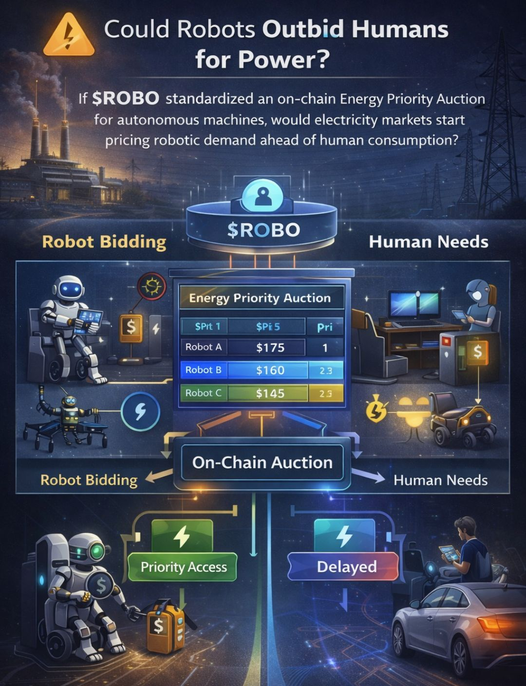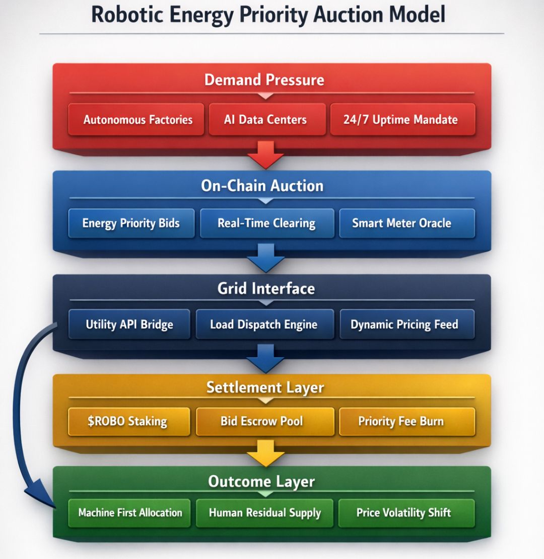 If $ROBO standardized an on-chain Energy Priority Auction for autonomous machines, would electricity markets start pricing robotic demand ahead of human consumption?