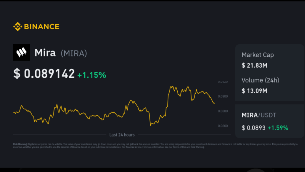 $MIRA Coin is currently trading inside a rising wedge / consolidation structure, showing short-term bullish momentum but approaching a potential resistance zone.
