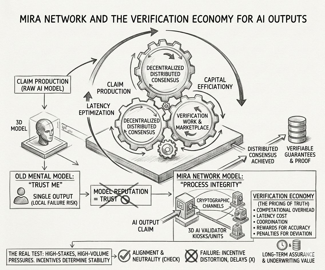 Mira Network affronta questo in modo diverso. Invece di trattare i risultati come prodotti finali, li tratta come affermazioni. Le affermazioni possono essere contestate, scomposte, esaminate e validate attraverso consenso distribuito. Quel cambiamento sembra sottile, ma strutturalmente cambia dove risiede la fiducia.