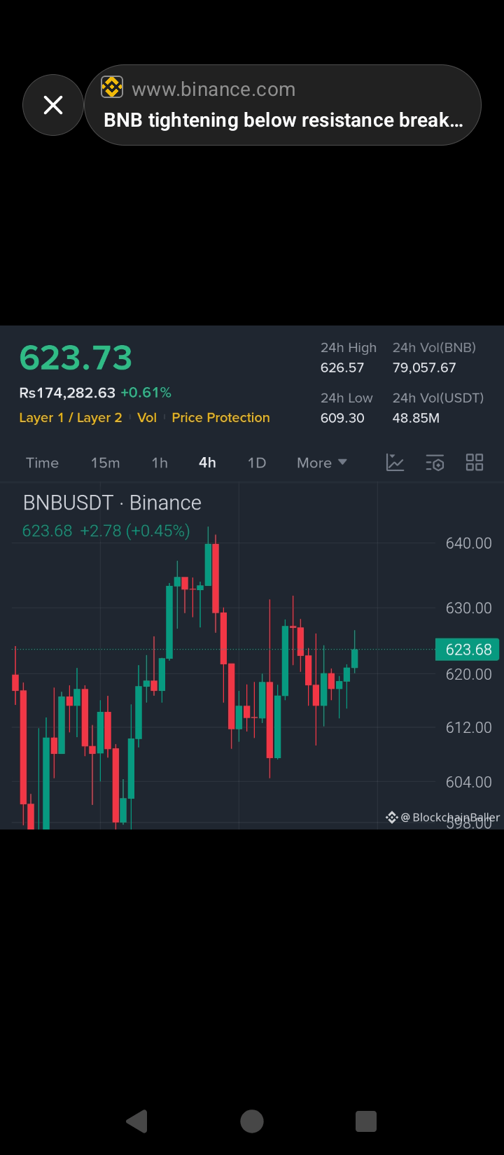 BNB trading near ~630-640 with mixed momentum indicators — RSI neutral, MACD weak, volume not convincingly bullish yet. �