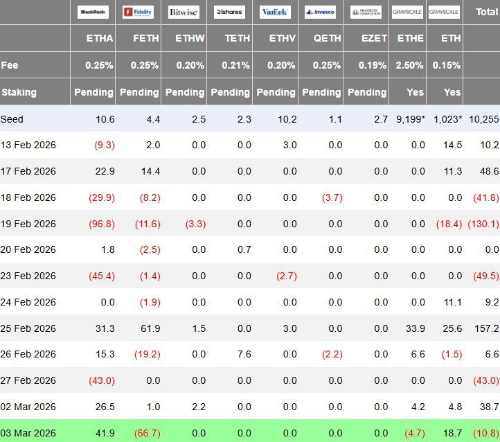 Yesterday, $ETH ETFs saw an outflow of $10.8M, suggesting short-term selling pressure from institutional products.