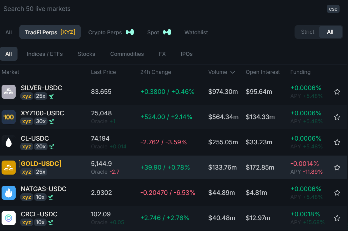 trade.xyz是去中心化永续合约交易平台(贵金属、原油、指数等),基于 Hyperliquid 链,使用 HIP-3 框架,支持 24/7 高杠杆交易。在上周巴以冲突的时候,全球交易者疯狂投入到trade.xyz\hype\bn等虚拟货币交易场所,开展针对黄金、白银、原油等标的的交易。