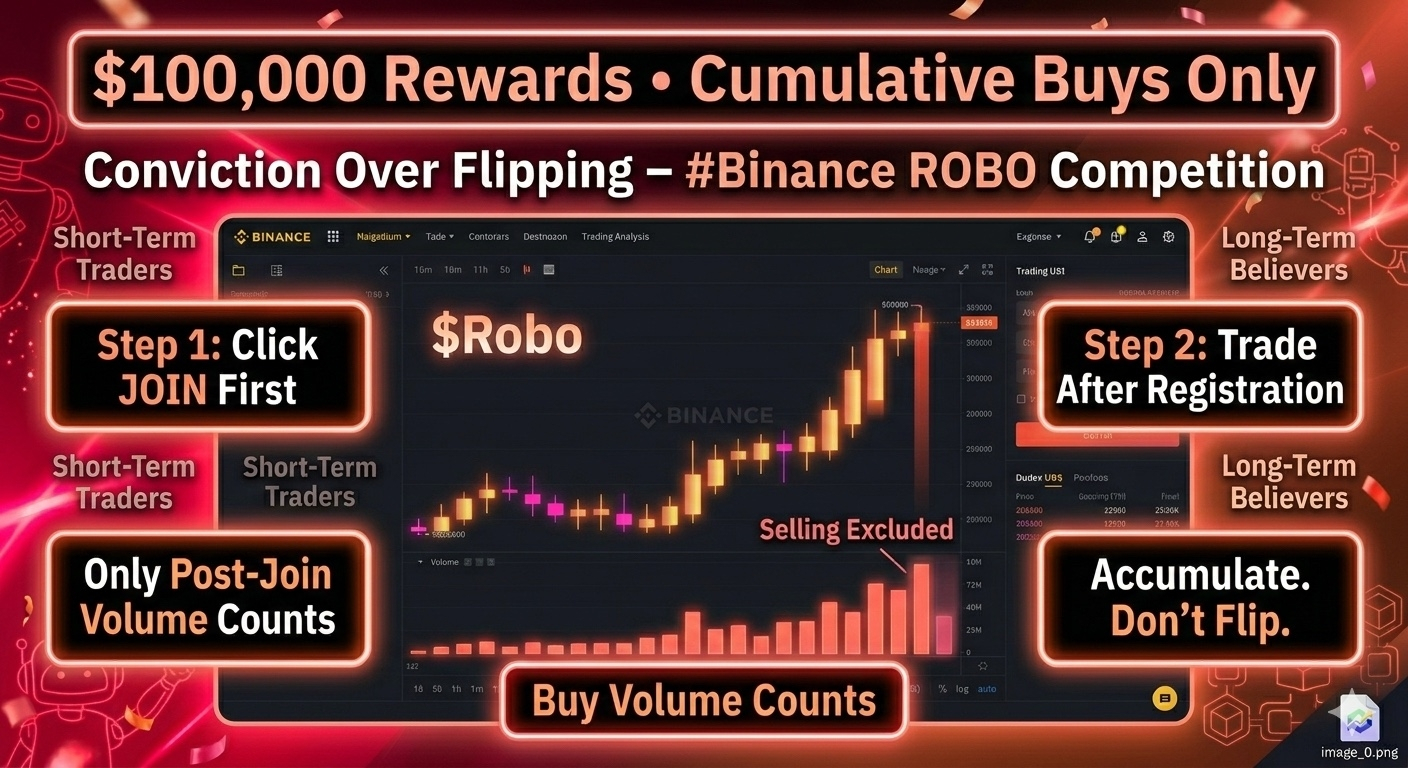 The #Binance $ROBO ROBO Trading 😍😍Competition is now live, offering $100K in rewards — and what makes it interesting to me is the structure. Only cumulative purchases count. Selling volume doesn’t. That alone changes the psychology of the campaign.