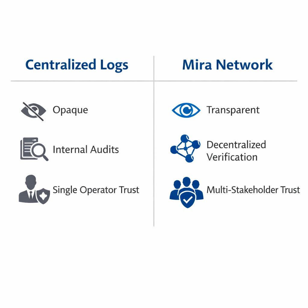 Traditionally, that accountability comes from centralized logs and internal audits. The operator of the AI system records what happened and explains it after the fact. That approach works as long as everyone involved trusts the operator. The moment that trust weakens—because of incentives, regulation, or conflicting stakeholders—the limits of centralized verification become visible.