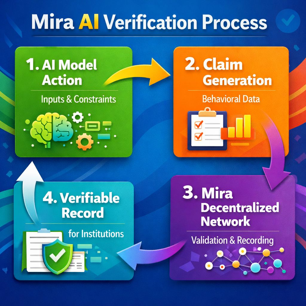 What interests me about Mira is that it does not attempt to compete with AI systems themselves. It doesn’t try to build better models or improve predictive accuracy. Instead, it focuses on a narrower layer: verifying claims about AI behavior. Inputs, constraints, execution context, and outputs can be recorded and validated through a decentralized network. In other words, the model still acts, but the verification of its behavior no longer depends entirely on the entity running it.
