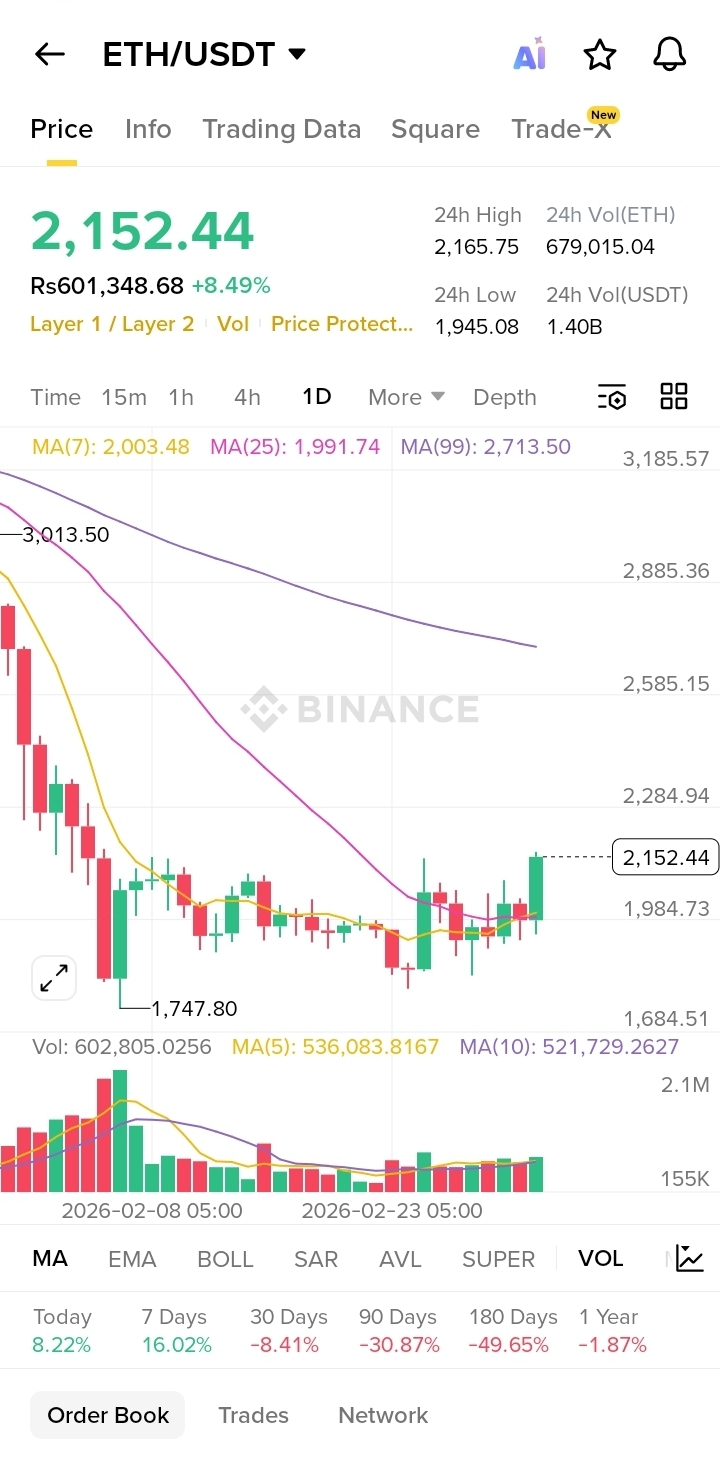 ETH ne strong bullish recovery dikhayi hai after recent low around $1,747. Aaj ki candle strong green hai jo buying pressure show karti hai.