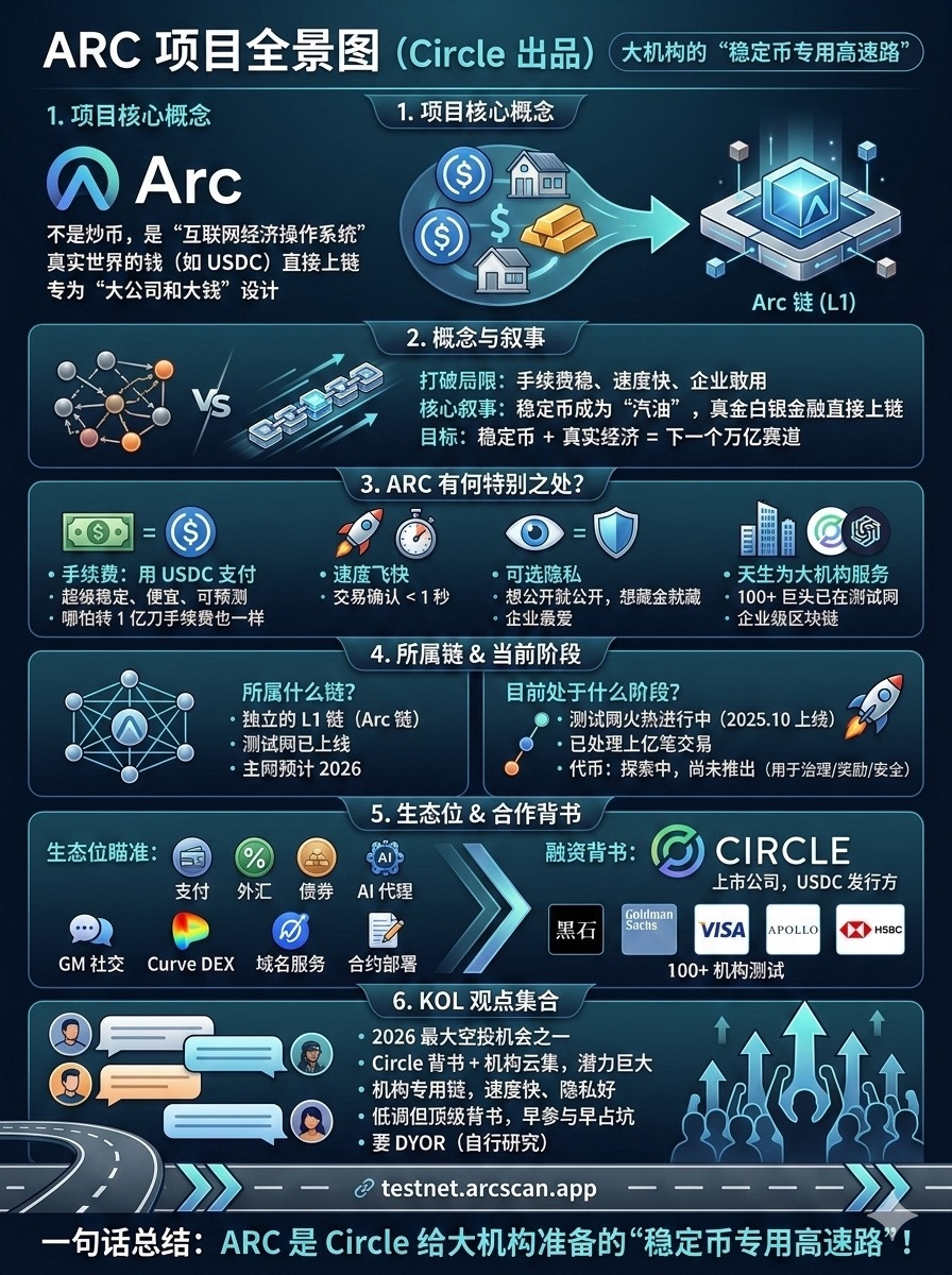 ARC 是 Circle 给大机构准备的“稳定币专用高速路”。现在免费刷测试网就像早年刷以太坊测试网一样,可能换来未来空投。DYOR,玩得开心!🚀