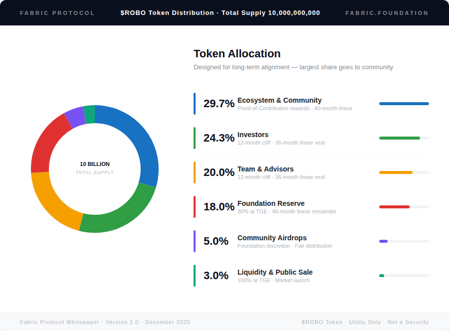 The ROBO token is the currency of this new economy. It powers six distinct utilities across the network from work bonds that ensure robot operators have skin in the game, to governance rights that let the community shape the protocol's future. Nothing in this system is passive. Nothing is speculative. Token value is anchored to real, verified, productive activity.