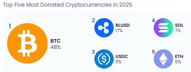 Nel suo ultimo rapporto annuale, la piattaforma ha dichiarato di aver facilitato oltre 100 milioni di dollari in donazioni di criptovalute nel 2025, con oltre 32 milioni di dollari provenienti da stablecoin come USDC, RLUSD, USDT di Tether e DAI.
