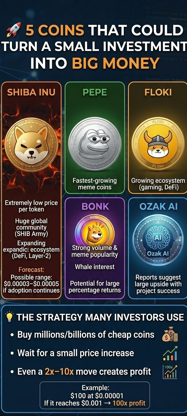 🚀 5 Coins That Could Turn a Small Investment Into Big Money