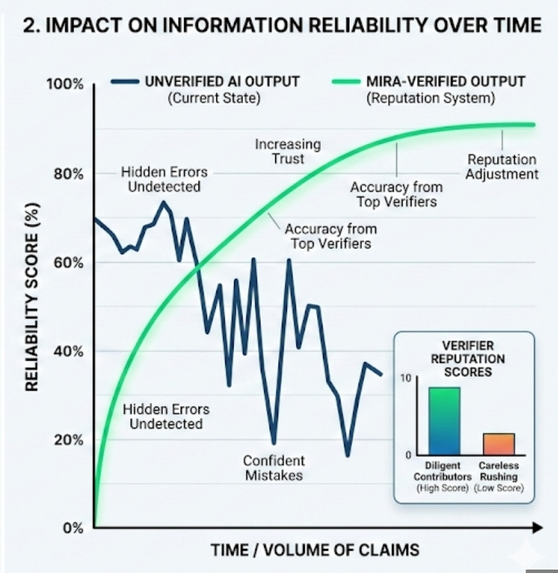 Breaking AI outputs into claims partly addresses that problem because performance becomes measurable. If a validator repeatedly approves claims that later prove incorrect, the system can record that pattern. Reputation systems—basically long-term trust scores—can adjust influence accordingly. People who verify carefully gain more weight in the network. Those who behave carelessly lose credibility over time. The idea resembles how trust forms in normal communities, although digital systems attempt to track it mathematically.
