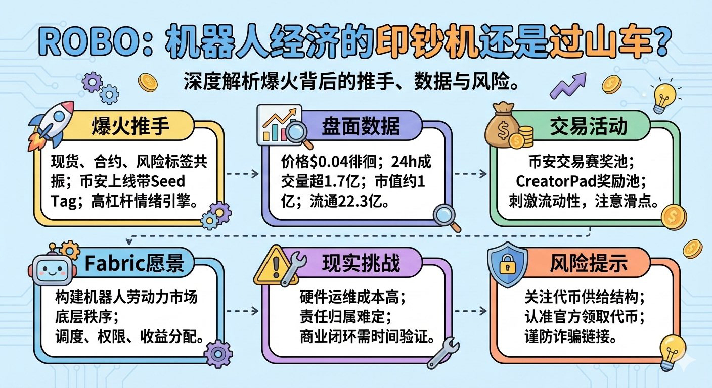 现阶段的 $ROBO,更像是一个“被交易所流动性机制点燃的主题资产”,而不是已经被现实业务验证的“现金流资产”。如果你真的感兴趣,把它当成一张长期观察的门票就好,别当成翻盘的赌注。真正值得你买入的信号是: