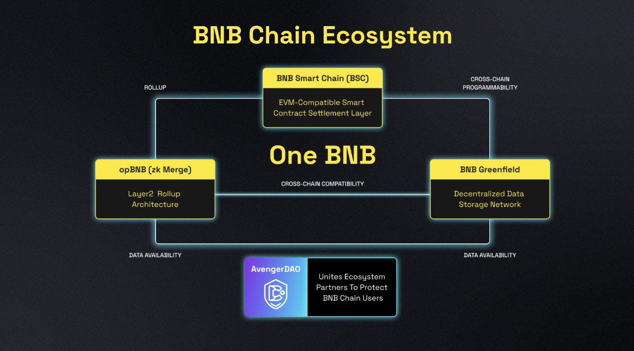 BNB Chain is designed with a modular architecture that allows scalability and flexibility for developers. The ecosystem mainly consists of several core layers: