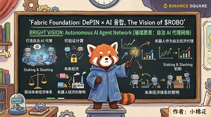 但最近,我刷到@Fabric Foundation 这个项目时,眼睛亮了。哇,这玩意儿不一样啊!作为一个结合AI、DePIN、区块链和机器人的去中心化网络,它不是简单堆砌热点,而是真有硬核的野心。Fabric Foundation是非营利组织,支持Fabric Protocol,这协议旨在构建一个模块化的通用机器人软件系统$ROBO 。想象一下:机器人不是孤立的工具,而是有区块链ID和钱包的自主经济代理,能在去中心化市场上分配任务、验证计算、处理支付。AI代理通过可验证计算自主运行,DePIN提供物理基础设施支持,区块链确保透明和治理。官网上说,他们聚焦人类-机器对齐、可解释性,还有机器治理框架。这让我这个硬核玩家激动坏了——终于有个项目不是光卖故事,而是实打实想解决AGI进入物理世界的痛点。比如,通过OM1通用操作系统集成UBTech之类的机器人硬件,让机器能实时决策、协作,甚至参与经济活动。逻辑推演下来,这套体系如果落地,能让机器人从工厂到家庭都变成智能节点,DePIN的计算资源全球共享,区块链防篡改。代码审查(我翻了他们的协议架构文档,虽然还没开源GitHub,但从白皮书推断),模块化设计很聪明,技能模块公链监督,避免了中心化AI的瓶颈。赞!这才是币圈该有的样子,硬核到让我想all in。