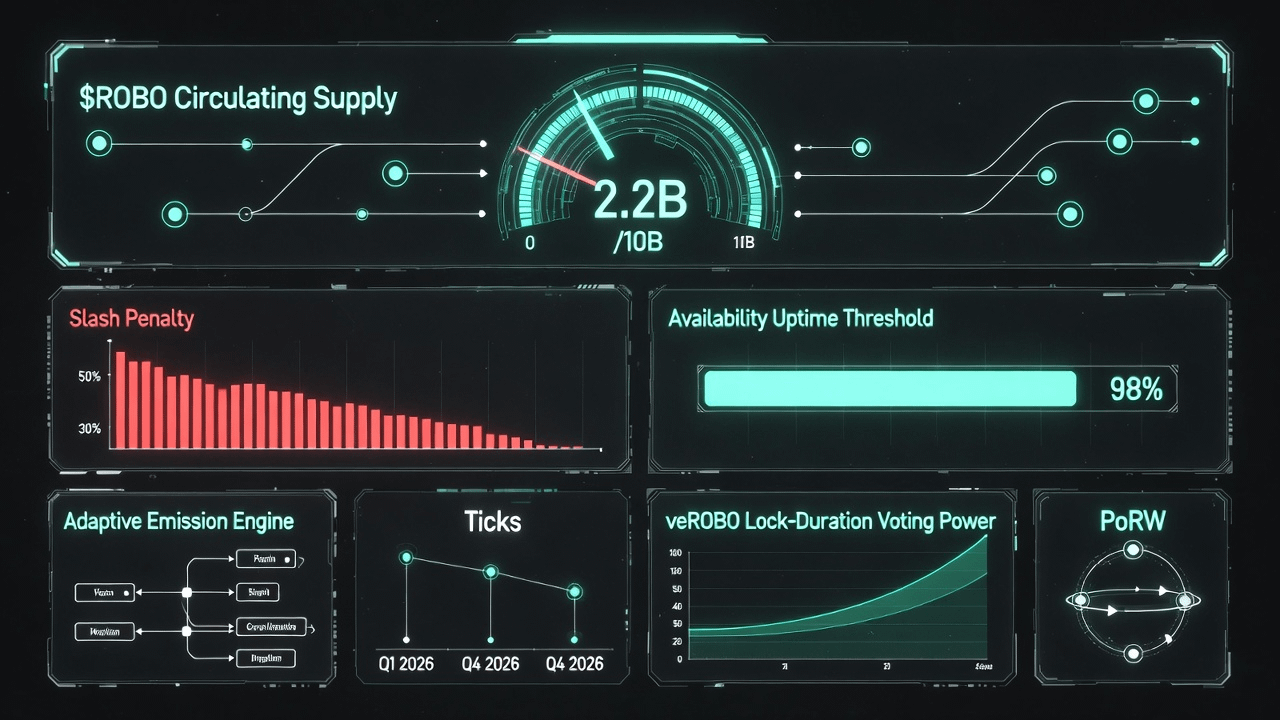 With 2.2 billion ROBO currently circulating out of a 10 billion fixed supply CoinGecko, the unlock overhang is real and worth modeling. But the Adaptive Emission Engine adjusts distribution rates based on network utilization — meaning emission pressure isn't fixed. It's a function of how much verified work the network is actually doing.
