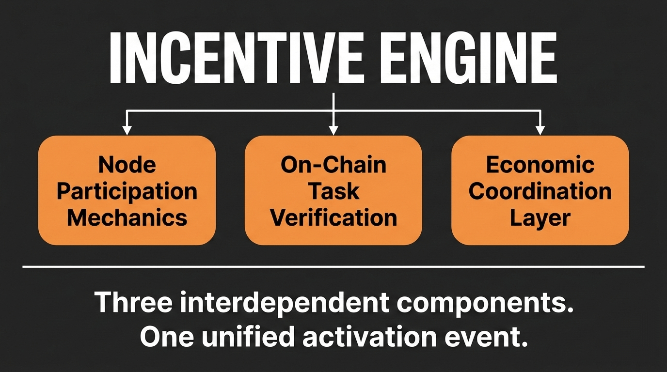 un motore non è un componente periferico. in qualsiasi sistema — meccanico, economico o computazionale — un motore è ciò da cui tutto il resto dipende per funzionare. chiamare il sistema di attivazione un motore implica che senza di esso in funzione, il resto della rete non ha coordinamento economico sottostante. gli operatori robotici non possono partecipare in modo significativo. i contributori non possono guadagnare in modo verificabile. il protocollo esiste come infrastruttura senza la logica economica che rende l'infrastruttura utile.