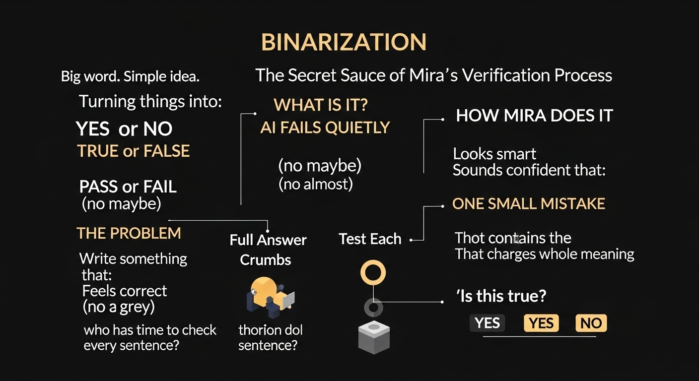 Because most AI today hides uncertainty behind strong language. It talks like it knows everything. But binarization forces honesty in a weird way. If too many small claims fail, the whole response gets questioned. It can’t just slide through because it sounds good.