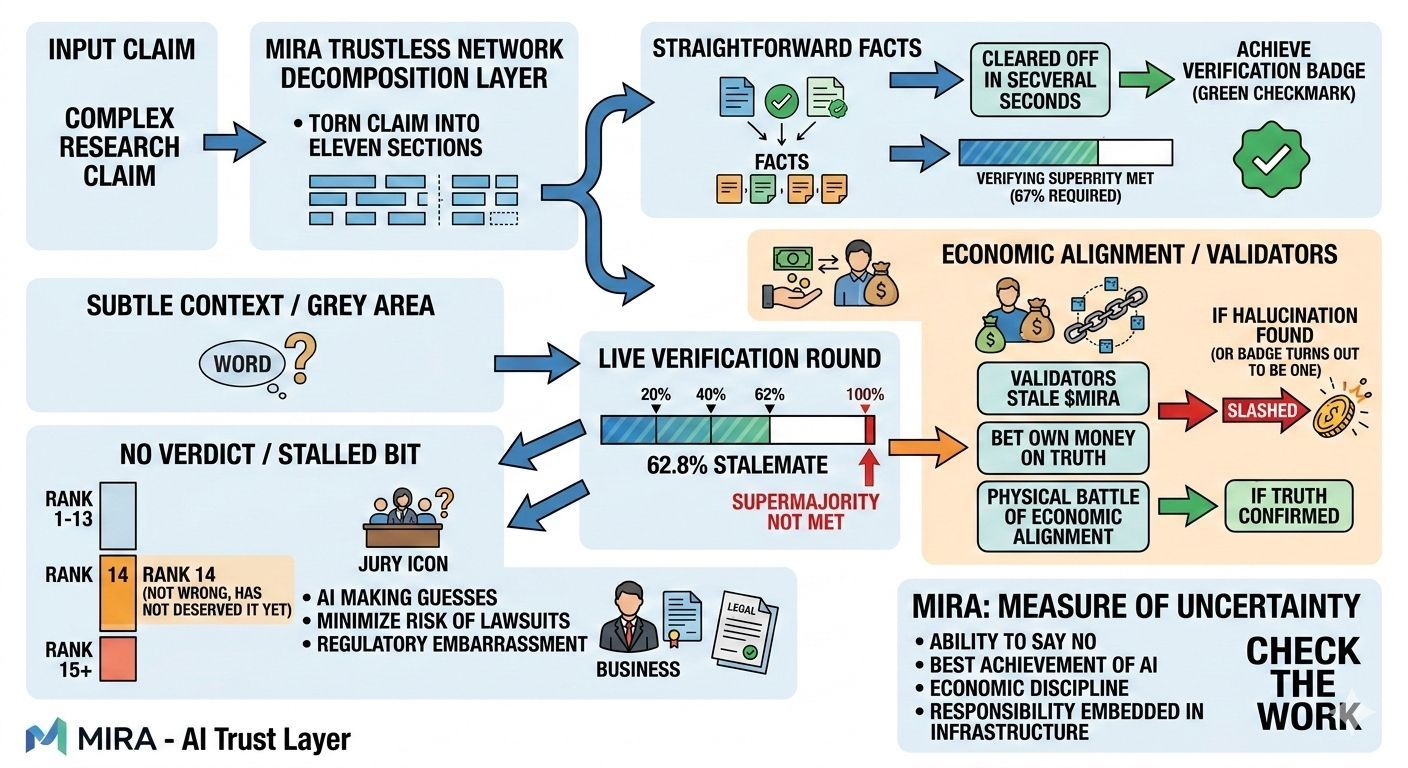 With Mira, the claim still passed. The certificate still verified it. But the system also exposed how aligned the independent validators actually were.