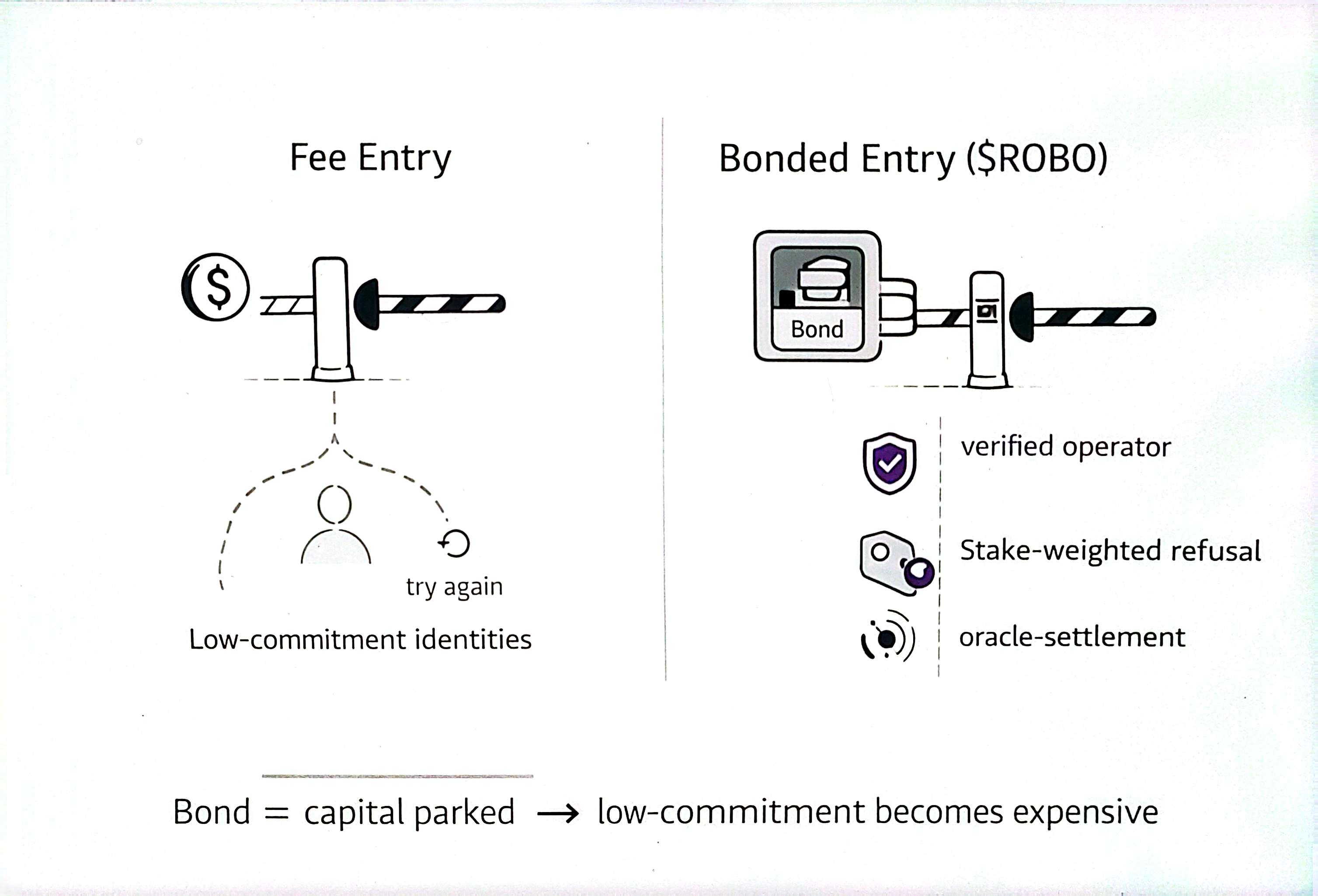 A friction fee is money spent and wasted. A bond is capital you park. This is the red line between gated access and free retry chaos, and Fabric drew the line at the protocol boundary.