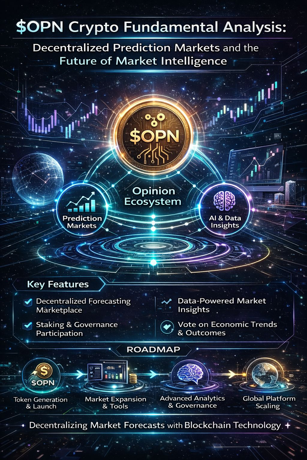 In generale, $OPN posiziona se stesso come un progetto che combina finanza decentralizzata con intelligenza di mercato predittiva, mirando a creare un ambiente trasparente dove gli utenti possono collettivamente prevedere e monetizzare le tendenze di mercato future.