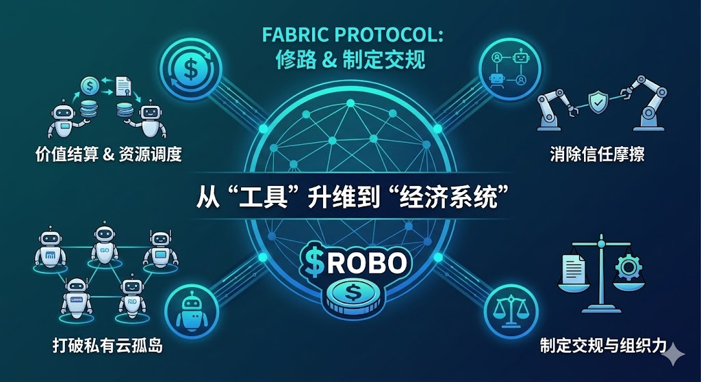 这就是为什么我开始死磕 $ROBO 代表的这套 Fabric Protocol。它释放出的行业信号非常明确:AI 赛道的竞争正在从“卷智商”转向“卷组织力”。以前我们买代币,买的是对某个算法的信心;但现在,像 #ROBO 这样的基础设施,实际上是在押注一套全新的“机器人社会秩序”。它不是在做一个单一的机器人产品,而是在修路、在制定交规,让成千上万个自主实体能够在没有人类干预的情况下,完成资源调度和价值结算。这种从“工具逻辑”到“经济系统”的升维,才是真正让我感到后背发凉的地方。