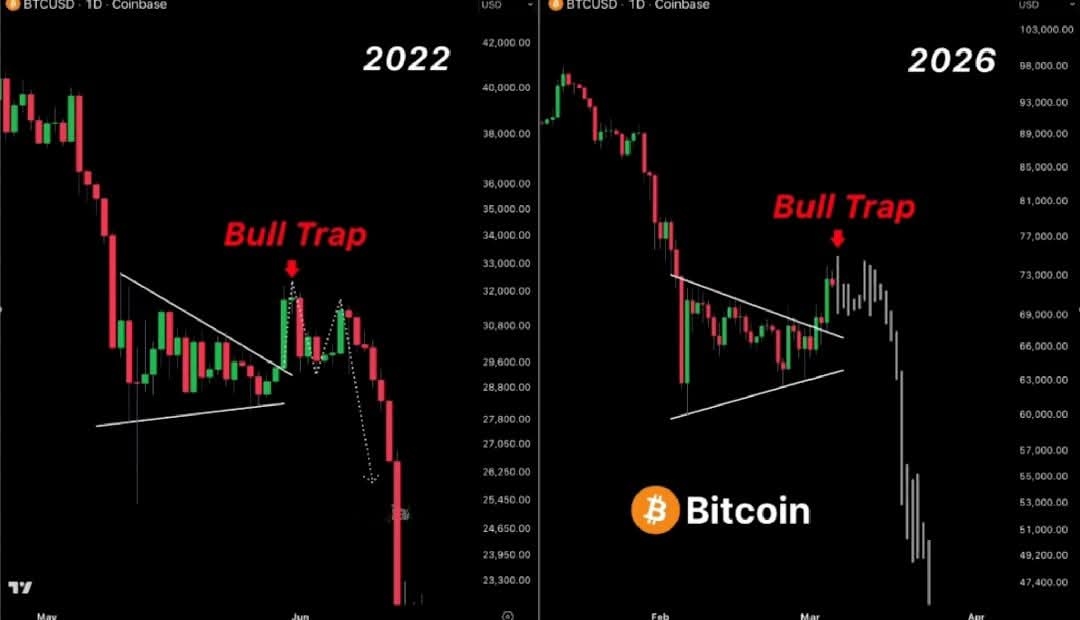 Nel 2022, Bitcoin ha formato una struttura di consolidamento simile.