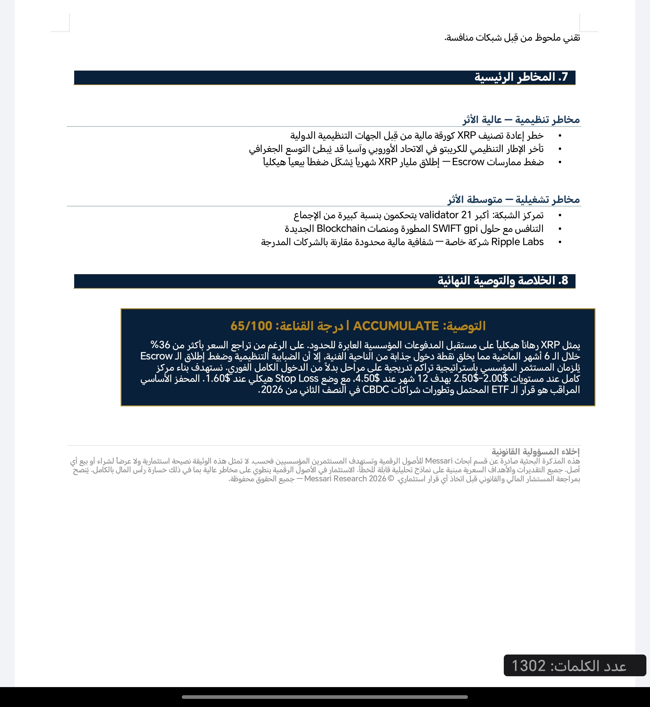 Nota di ricerca XRP — Stile Messari Research ✅