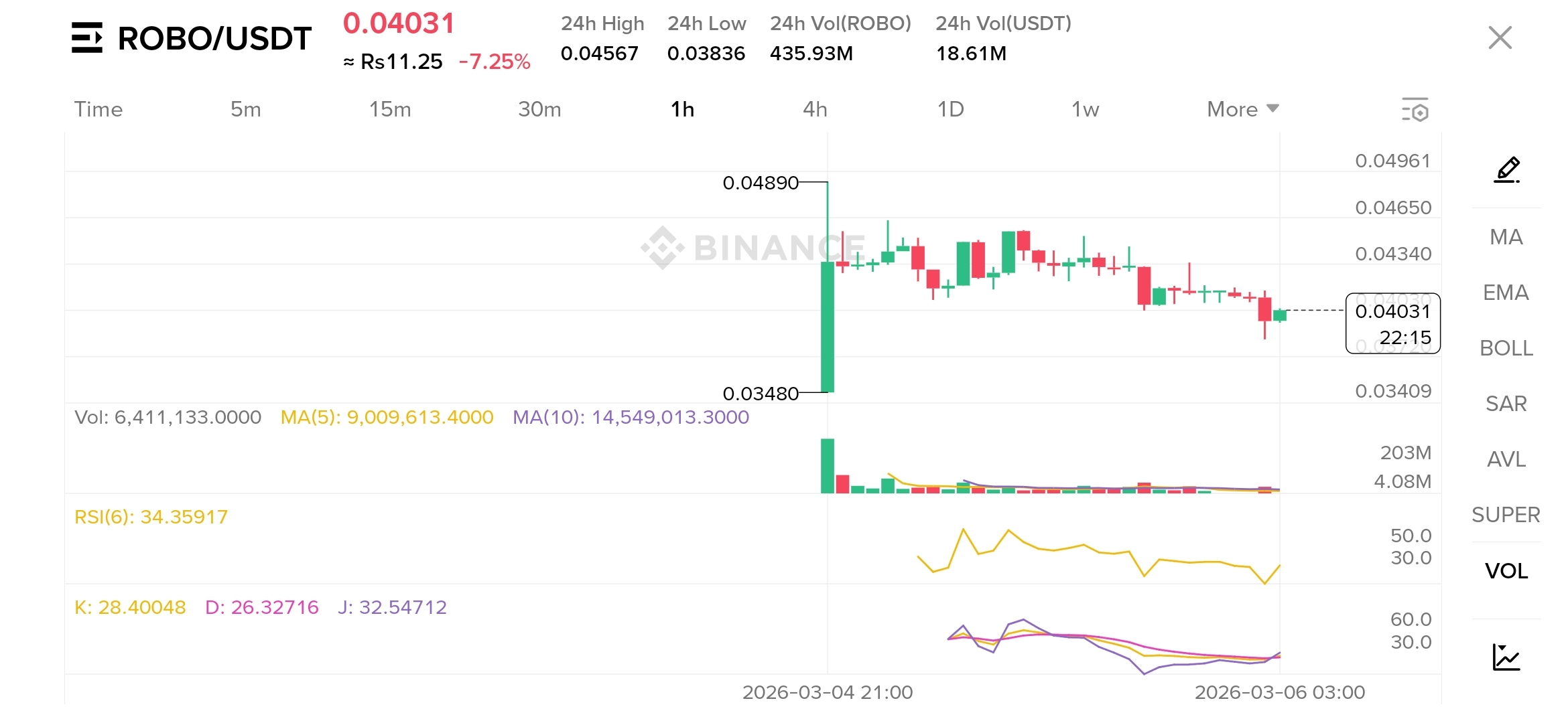 Looking at the chart, ROBO had a strong push earlier that took it near $0.05. After that it pulled back and has been consolidating around the 0.04 level. This kind of pause is often just the market catching its breath.