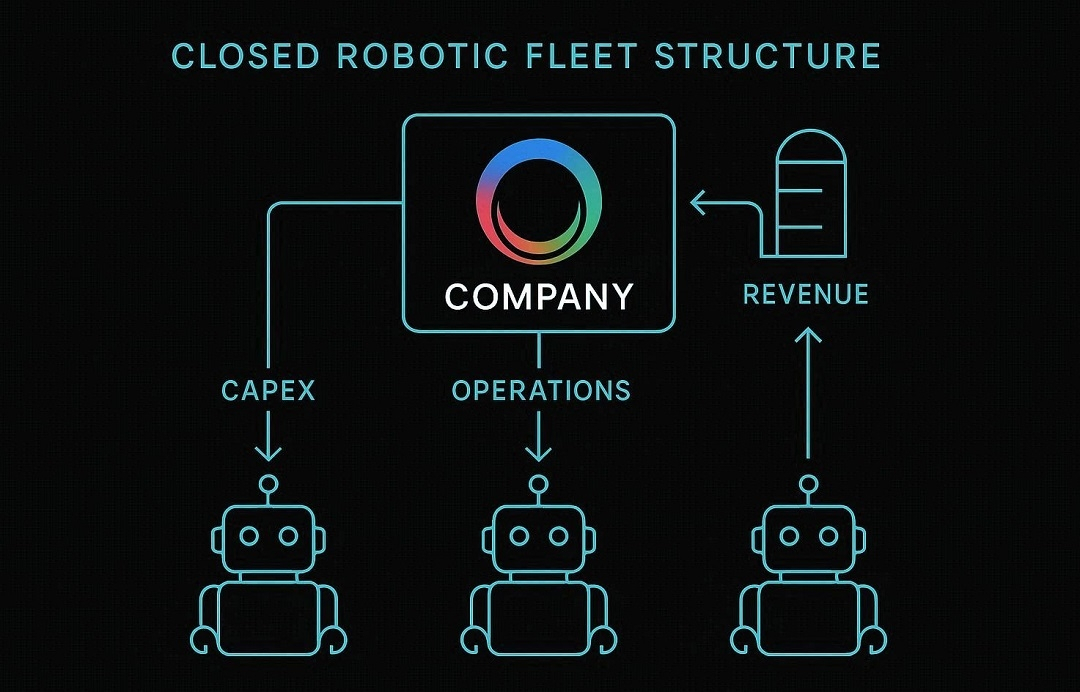 Most robotic systems today operate as closed fleets. A company raises capital, purchases hardware, manages operations internally, and signs service contracts directly with customers. The robots themselves remain embedded inside this vertically integrated structure. Capital, infrastructure, and revenue flow through the same institutional channel.