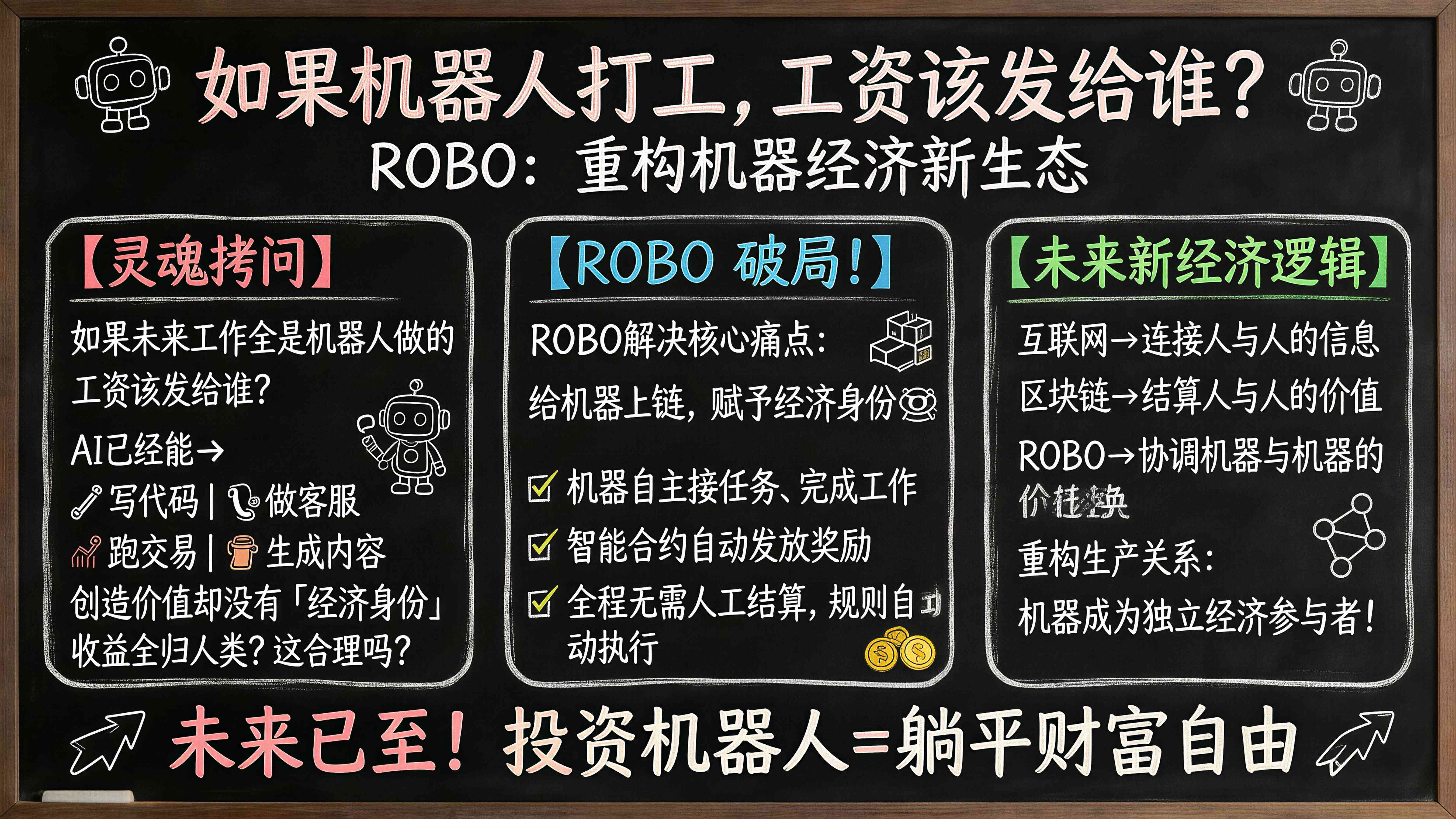 未来已至,10年内,你名下投资的每一个机器人,都是你财富自由,体验躺平经济的资本。有时候我在想一件事:如果未来很多工作都不是人做的,而是机器人做的,那工资应该发给谁?这听起来像科幻问题,但这两年AI的发展速度,说实话已经有点超出很多人的想象了。写代码、做客服、生成内容、跑交易策略,很多事情机器已经能干,而且效率还不低。但这里有个很现实的问题——这些机器虽然在创造价值,但它们本身没有“经济身份”,所有收益最后都要挂在人类账户下面。我最近在研究ROBO的时候,突然意识到,这个项目其实是在试图解决这个问题。